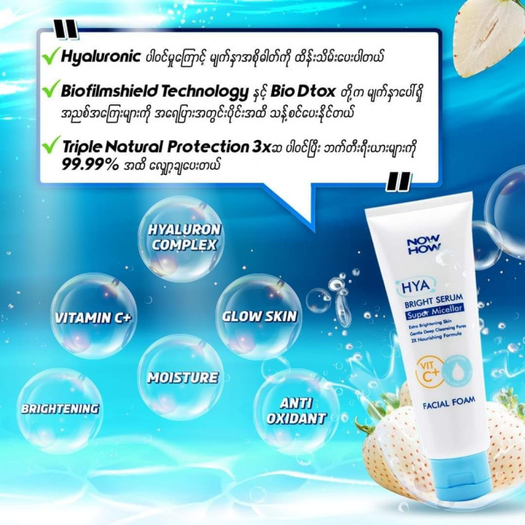 နေ့စဥ် ပုံမှန် အသုံးပြုခြင်းဖြင့် အသားအရည်ကို ကြည်လင်ဝင်းပစေကာ ပုံမှန်ထက် ၁၀နှစ်စာမက ငယ်ရွယ် နုပျိုမှုကို ခံစားနိုင်စေဖို့ HYA Bright Serum Facial Foam နဲ့ မျက်နှာသစ်လိုက်ကြရအောင်