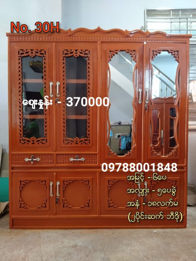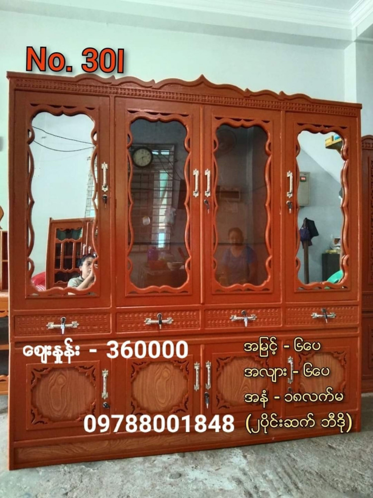 (ဘီရိုတစ်လုံးလုံး၏အခင်း၊အကာ၊ကျောပိတ်အားလုံးအားဖော်မီကာအထပ်သားအချောများဖြင့်All setခင်းပေးထားပါတယ်ရှင်)
