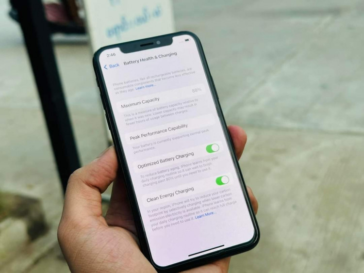 နောက်ဖုန်းအပေါ်ဒေါင့်မှာ သေးသေးလေးစင်ထားတယ်