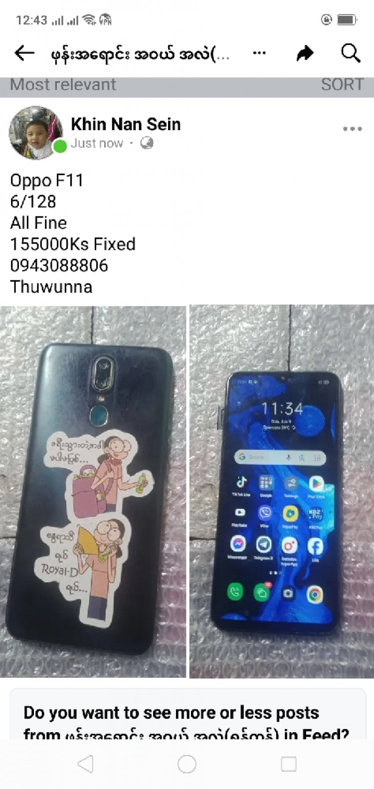 Oppo F11(6/128/ Image, လျဟပ်စစ်ပစ္စည်သမျာသ classified, Myanmar marketplace, Myanmarkt