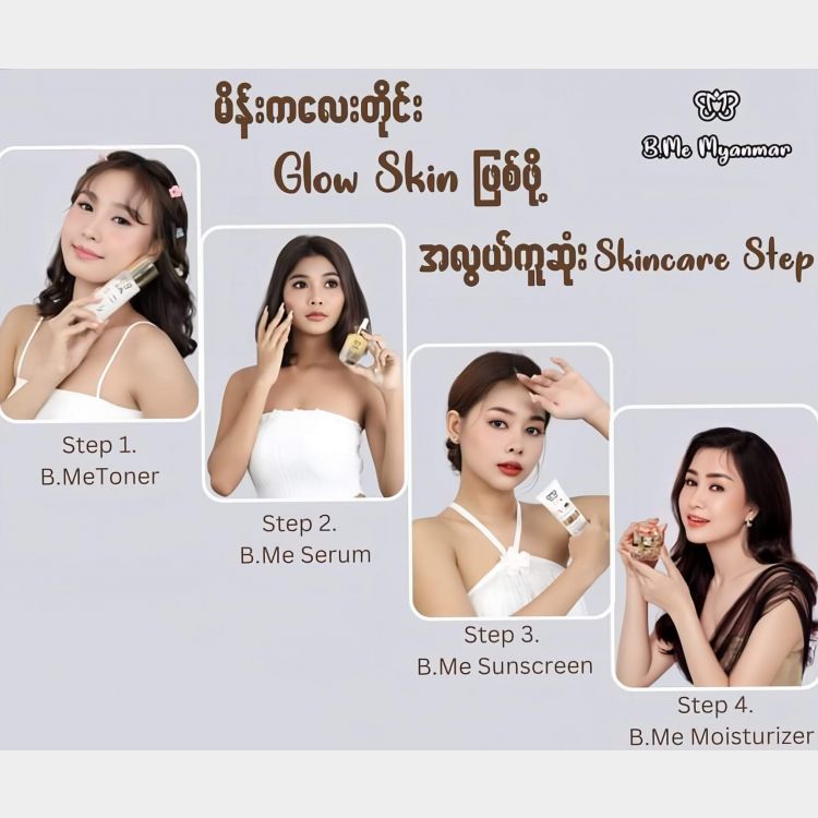 𝐁𝐚𝐬𝐢𝐜 𝐒𝐤𝐢𝐧𝐜𝐚𝐫𝐞 အနေနဲ့ကတော့ 𝐅𝐚𝐜𝐢𝐚𝐥နဲ့မျက်နှာကိုသေချာသန့်စင်ပြီးတာနဲ့ 𝐁.𝐌𝐞ရဲ့ဒီ၄မျိုးဘဲသုံး‼