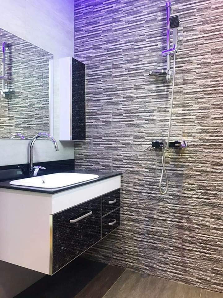 တစ်အိမ်လုံး ပါကေးနှင့်ကြွေပြားများခင်း/ကပ်ထားသည်။