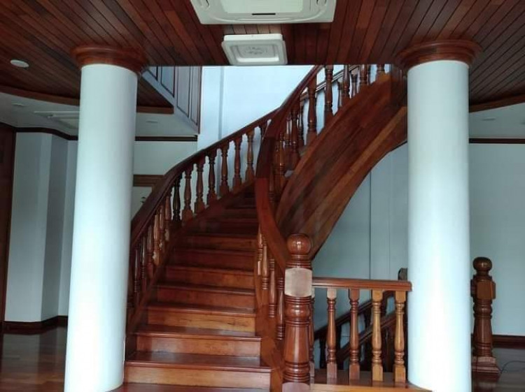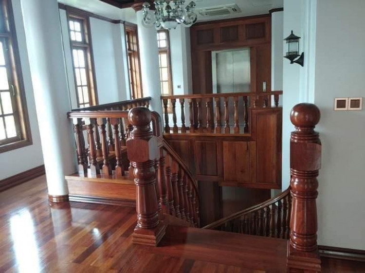 🗨လှေကား/ ပြတင်းပေါက် / ဝင်ပေါက ်များအားလုံးကို ပိတောက်သား/ကျွန်းသား သက ်တမ်းရင့် များဖြင့် သုံးထားပါသည်။