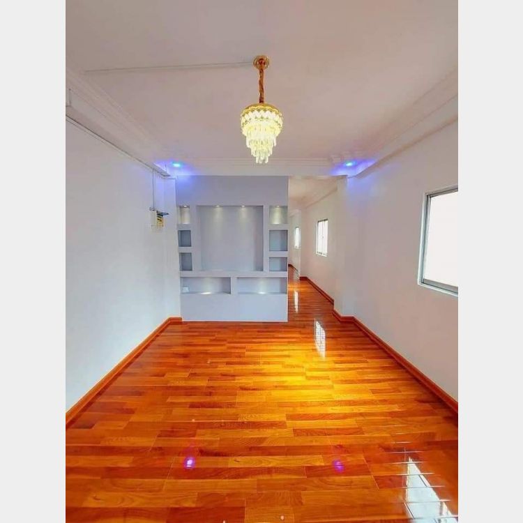 ရန်ကုန်သစ်ရပ်ကွက် ဘုရင့်နောင်လမ်းမကြီးပေါ် ၆ထပ်တိုက်ရဲ့ပထမထပ်စစ်စစ်ဘေးတိုက်မရှိတအိမ်လုံးပါကေးခင်းနောက်ဖေးဝရံတာကြွေပြားခင်းထားပါတယ်။