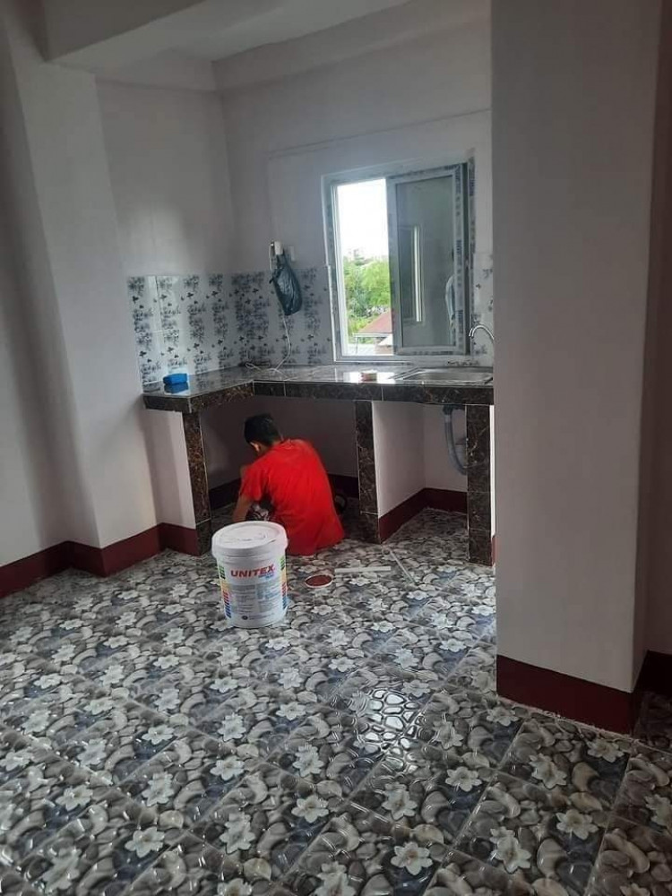 ● မီးဖိုခန်း ကြွေပြားခင်း - ဘိုထိုင်အိမ်သာ - ရေချိုးခန်း ကြွေပြာခင်း/ ကပ်