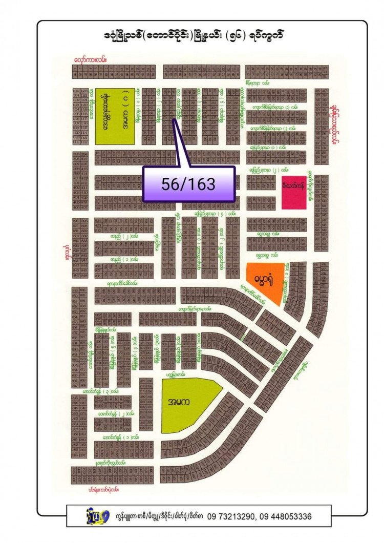 တောင်ဒဂုံ (56)ရပ်ကွက် မြေကွက်အမှတ်(163) ပေ40*60 ဂရန် (SP) လှော်ကားလမ်းမအနီးရှိ နေရာကောင်း အရှေ့မြောက်အလှည့် မြေကွက် အရောင်းလေးပါ