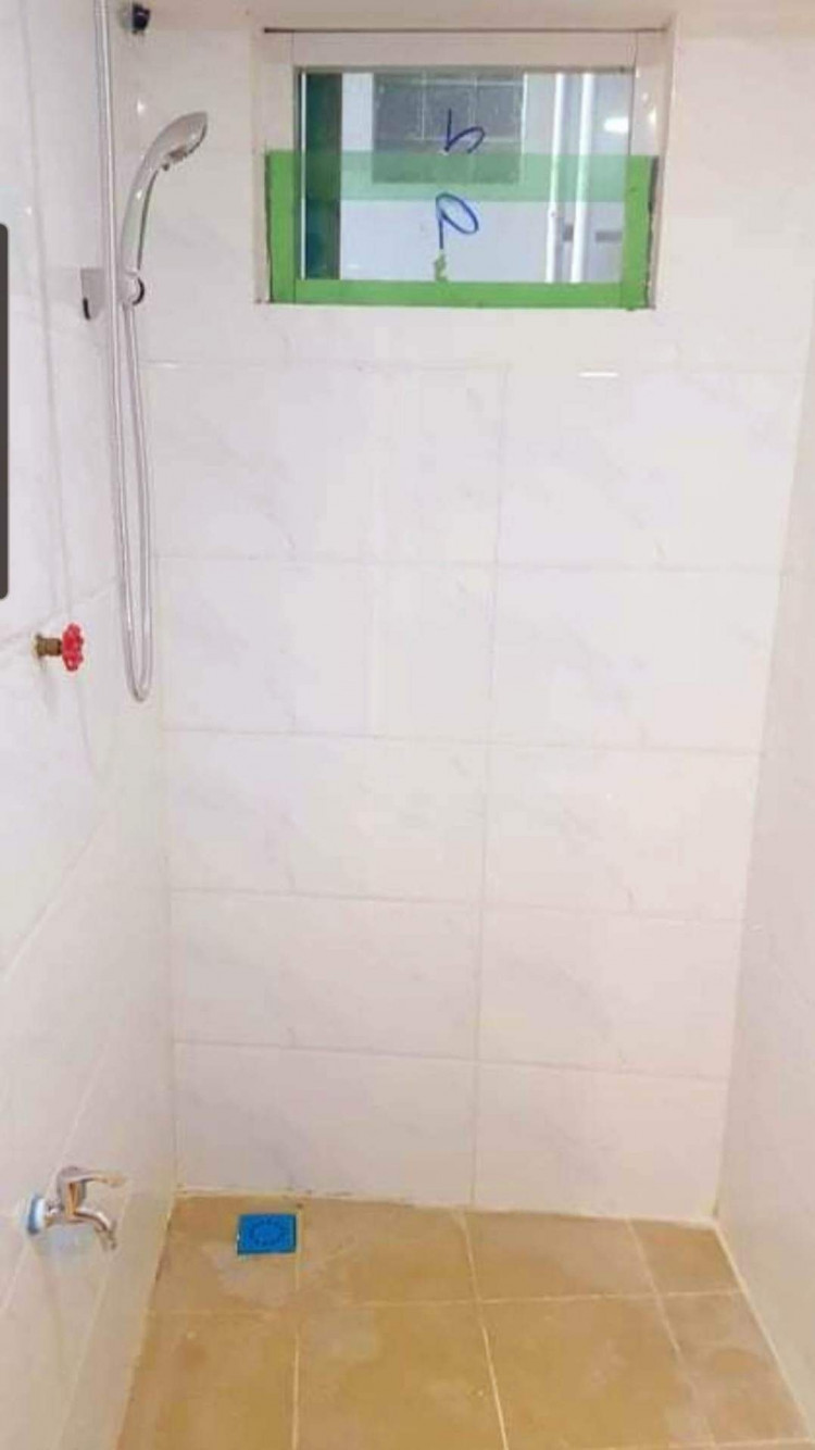 ကြွေပြားများ အပြည့်ကပ်ထားသော ရေချိုးခန်းနှင့် သန့်စင်ခန်းဘိုထိုင် (2)လုံးပါရှိပြီး ၊