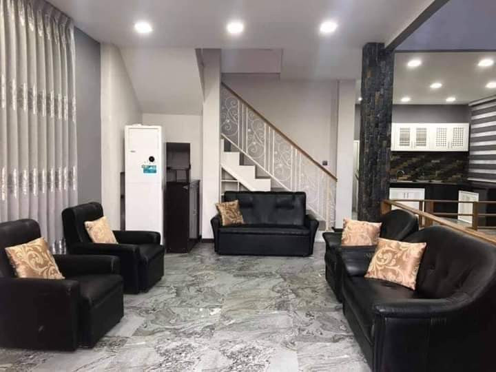ပေ 40 ပေ60မြေပေါ်တွင် အိမ်ရှေ့အိမ်နောက်မြေပိုများပါရှိသော အသင့်နေသုံးထပ်တိုက်