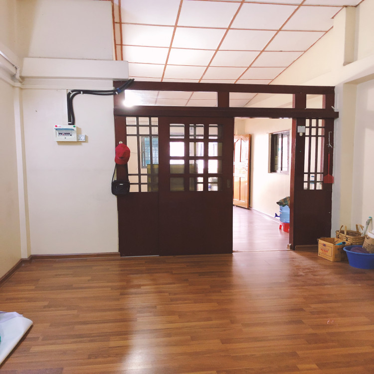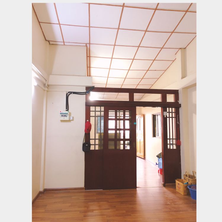 - ကျွန်းတံခါး Sliding door partition တပ်ဆင်ထား