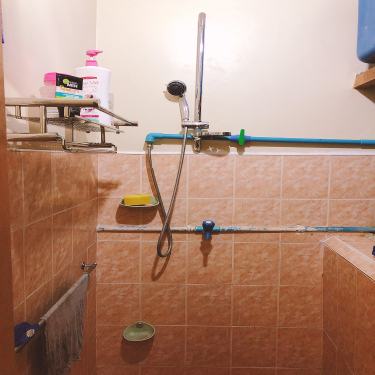- ရေချိုးခန်း အိမ်သာ (ဘိုထိုင်) ကြွေပြားကပ်ပြီး