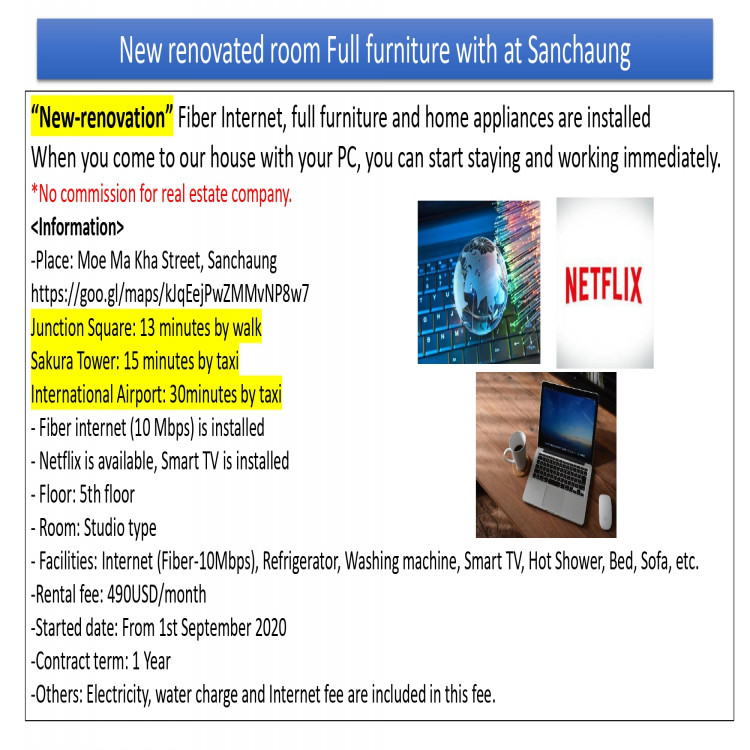 “New-renovation” Fiber Internet, full furniture and home appliances are installed