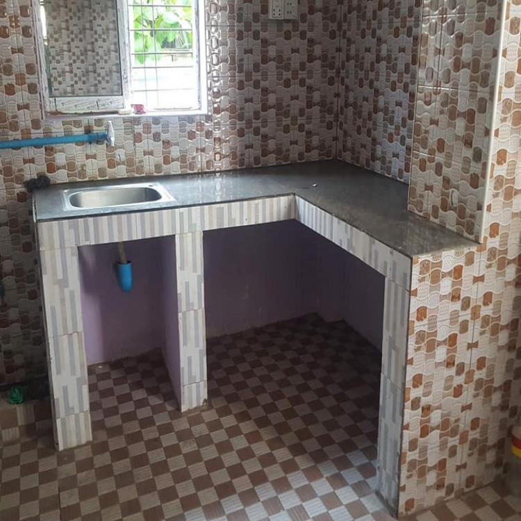 နောက်ဖေးခန်း နံရံ+ကြမ်းခင်း ကြွေပြားကပ်၊