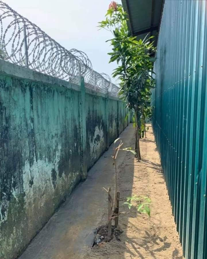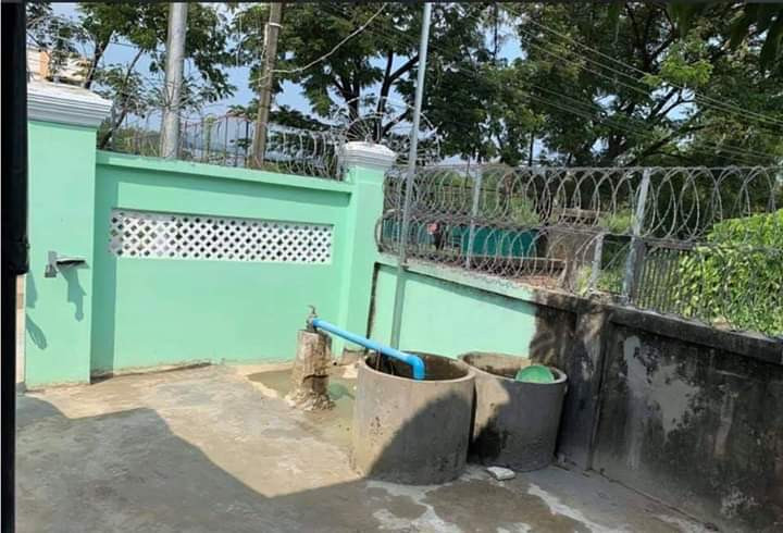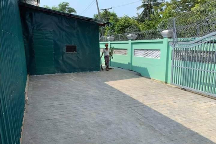 ဂိုဒေါင်ရှေ့ ကွန်ကရစ်လမ်းမှာ လမ်းကျယ် ဖြစ်ပြီး။