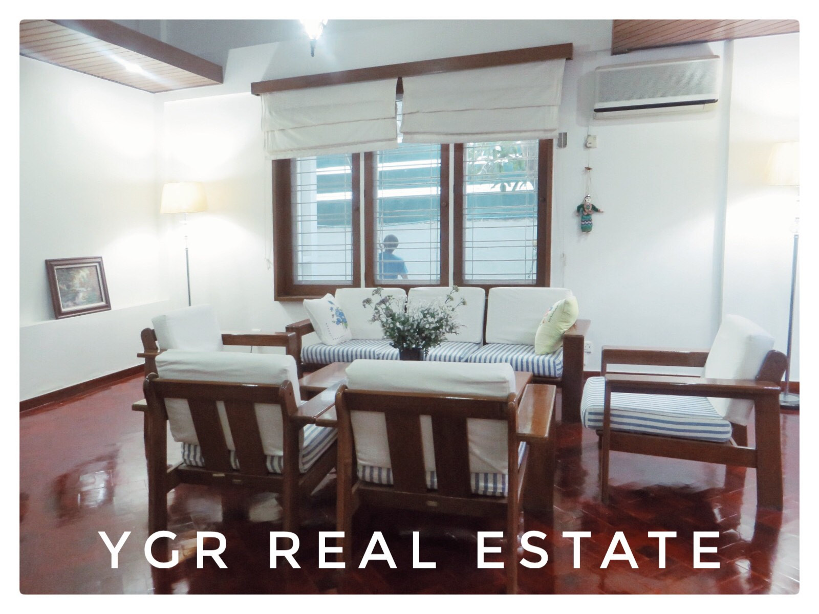 This two stores house is peacefully located in the haert of Yangon, Golden Valley. The whole sqft of the compound is 11000sqft and perfectly allovate with 55 ft x 40 ft ( 2RC ), Specious green garden and car garage which also have a room for car driver. House have Three master bedrooms and two single bedroom. That is really suit for beautiful family with kids. House have 2 fridge, washing machine, dryer, water heater, satellite TV, Internet and Back up diesel generator DANYO ( JPN) 25KVA. ($4500)